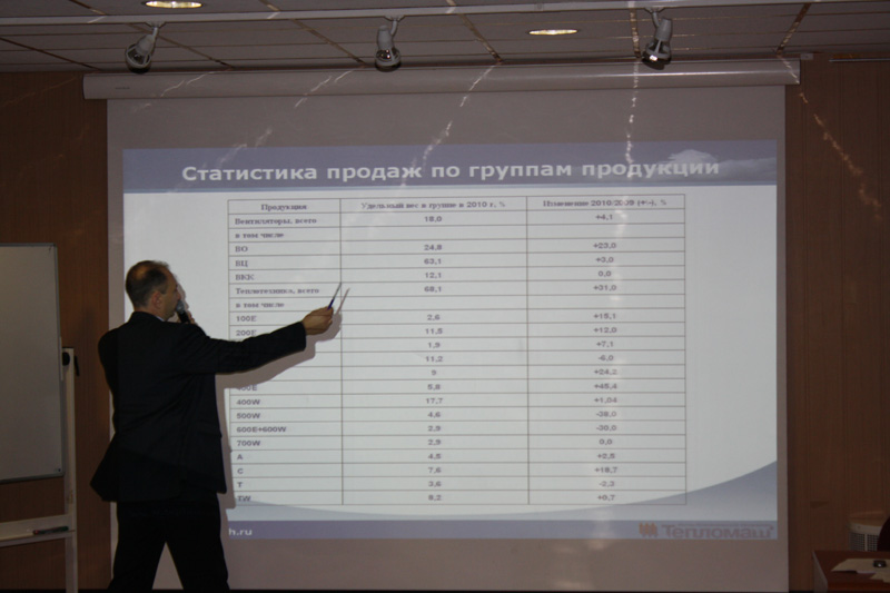 Доклад «Особенности развития рынка теплового и вентиляционного оборудования в 2010-2011 гг. Перспективы дальнейшего развития Тепломаш», докладчик - директор по продажам Борис Николаевич Власенко: