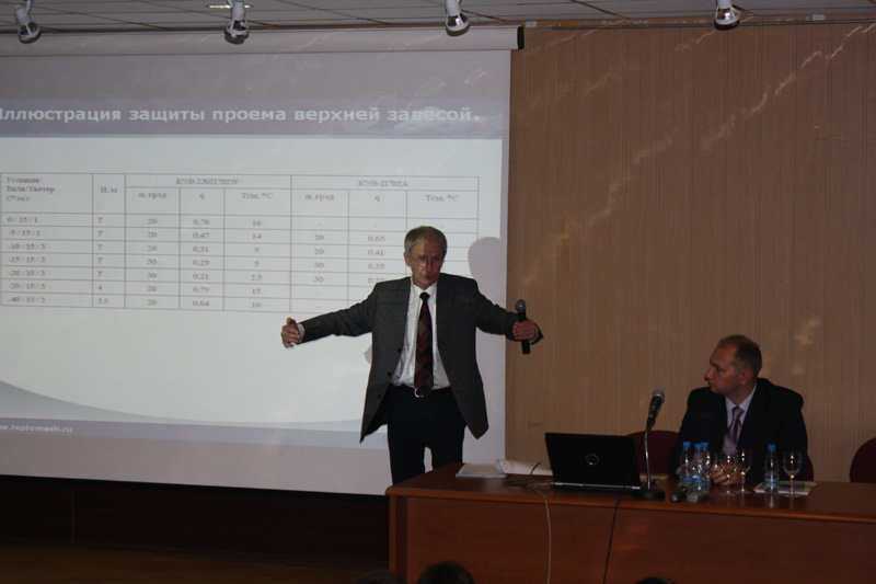 Доклад «Завесы и тепловентиляторы с газовым источником тепла», докладчик - главный инженер Константин Витальевич Лесохин