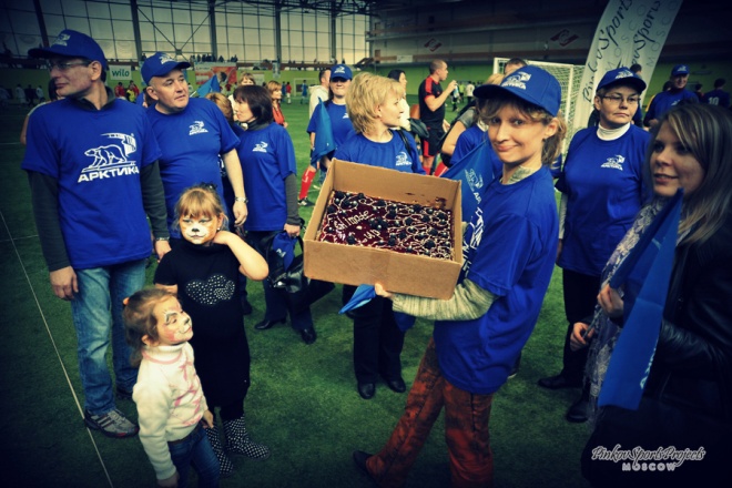 Болельщики на «Climate Cup» были активны как никогда. Ведущий буквально не успевал зачитывать sms-сообщения с лозунгами в поддержку различных команд. Для групп поддержки были организованы специальные конкурсы. Организаторам пришлось тяжело, ведь выбирать лучших оказалось не так просто. В итоге это звание получили поклонники команды United Elements. Самой многочисленной группой поддержки стали болельщики Арктики. Они получили сладкий подарок от наших партнеров компании Кофе Хауз. Отдельный приз, как самой лучшей болельщице, достался Маргарите Емец (Сигма-Вент).
