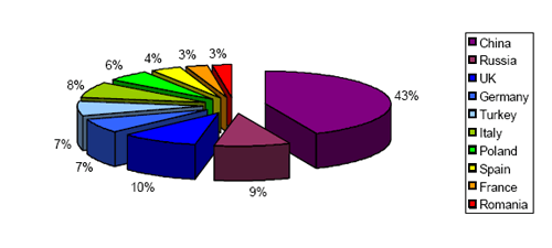 Крупнейший рынок радиаторов среди стран, изучаемых BSRIA, находится в Китае, и его рост здесь, как ожидается, продолжится. Китай - одна из немногих стран, где не было спада продаж с 2007 года. Неплохие показатели продаж также в России и Великобритании. В последние годы в этих странах наблюдался спад продаж, но в ближайшие 2-3 года уровень продаж будет держаться на том же уровне.