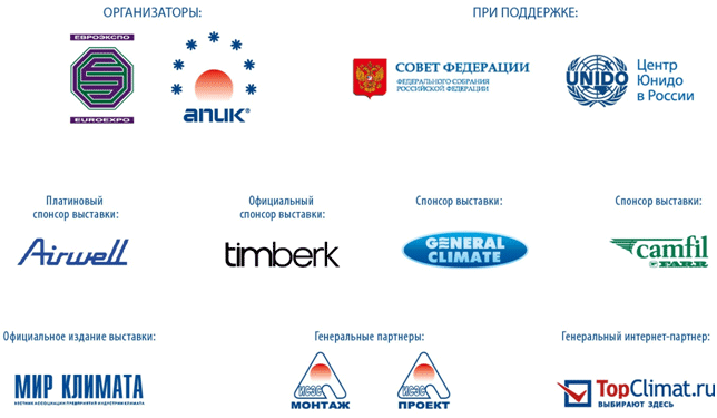 Платиновым спонсором «Мир Климата 2011» выступает компания AIRWELL. Официальный спонсор – компания TIMBERK. Спонсоры выставки – компании GENERAL CLIMATE и CAMFIL FARR. В этом году в выставке «Мир Климата-2011» принимает участие более 300 компаний из 27 стран мира.