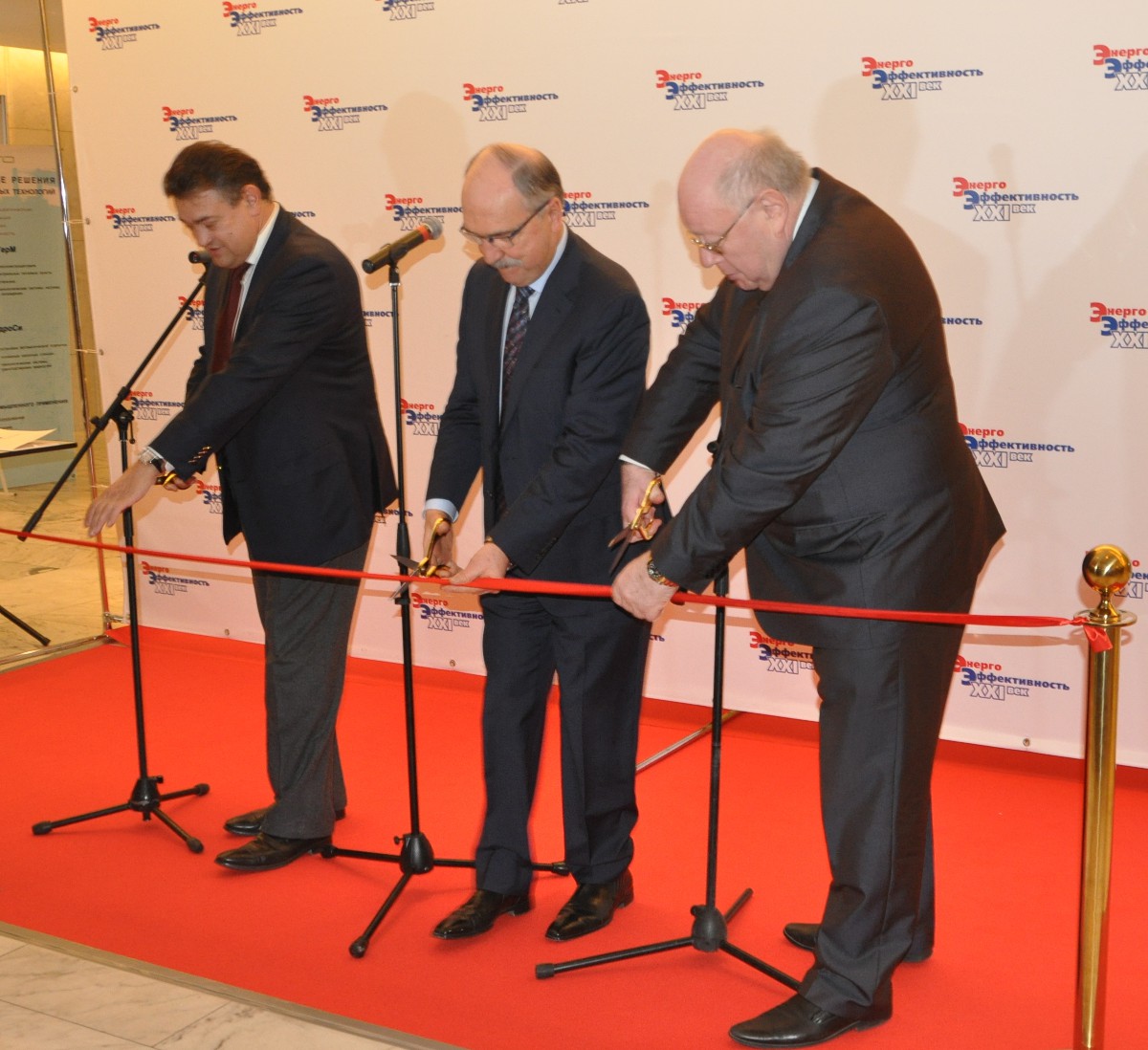 Красную ленту перерезали и открыли выставку президент Национального объединения организаций в области энергосбережения и повышения энергетической эффективности (НОЭ), председателя оргкомитета конгресса Владимир Пехтин, вице-президент, руководитель Аппарата НОЭ Леонид Питерский и вице-президент, член Совета НОЭ, ответственный секретарь конгресса Александр Гримитлин.