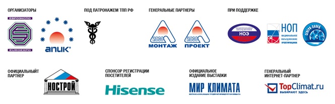 В числе участников свою продукцию и услуги на выставке представят Белая Гвардия, Благовест-С+, Бриз–Климатические Системы, ГК АЯК, Даичи, РМ Вент, Русклимат, CIAT, Clivet, Haier, LG Electronics, Mitsubishi, Cabero, Samsung, EBM-PAPST, REMAK, Gree, Zeihl-Abegg, Siemens, Корф, Lindab, Spiro, Геоклима и другие известные бренды.