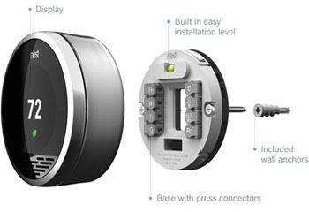 Из спецификаций следует, что устройство совместимо с 85% американских бытовых систем вентиляции и кондиционирования. Монтаж производится на место старого термостата (может понадобиться установка датчиков движения). При первом включении терморегулятор задает пользователю несколько вопросов: ZIP-код региона, режимы работы, интервал комфортной температуры и т.д. Дальнейшее управление температурным режимом возможно также с планшета, смартфона (пока поддерживаются iOS и Android) и через Интернет.