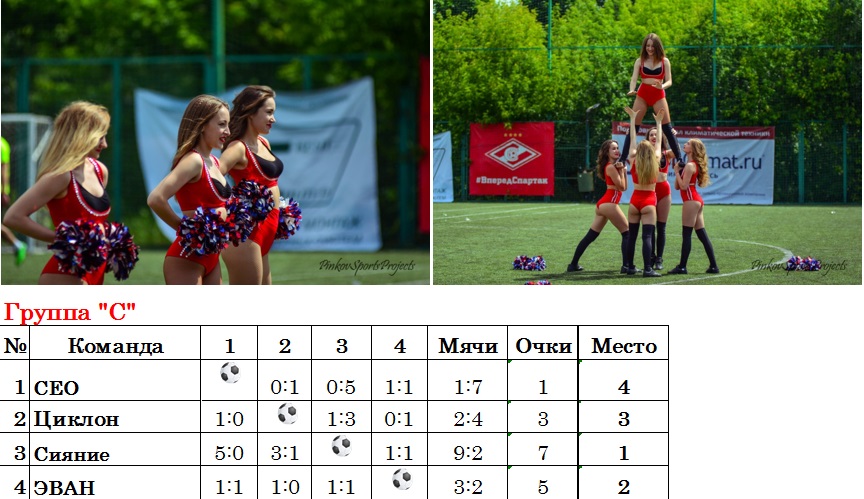 В группе C бой за титул приняли команды CEO, Циклон, Сияние и ЭВАН. CEO после второго тура уже не мог подняться выше 4-го места, но команда дала бой одному из лидеров группы ЭВАНу. Ничья 1:1 лишила последних шансы на первое место, и только поражение Циклона от команды Сияние со счетом 3:1 позволило команде продолжить борьбу за Золотой Кубок. Впрочем, для того, чтобы занимать 1-е место, ЭВАНу нужно было побеждать очень крупно: во втором туре Сияние победило СЕО со счетом 5:0, что обеспечило не только хорошие очки, но и крайне благоприятную разницу мячей. Стоит отдельно отметить команду СЕО: это коллектив генеральных директоров различных компаний, которые впервые сыграли друг с другом в футбол, не проведя вместе ни одной тренировки. Поэтому даже 1 забитый гол и ничья с ЭВАНом - который, как вы узнаете позже, довольно успешно выступит в Золотом Кубке – могут считаться определенным достижением для новой команды, боровшейся с коллективами, существующими не один год.