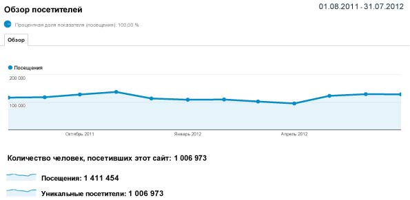 Статистические показатели TopClimat остаются на высоте. По данным Google Analytics в период с 01.08.2011 по 31.07.2012 – почти 1,5 миллиона посещений, из которых более миллиона уникальных посетителей.