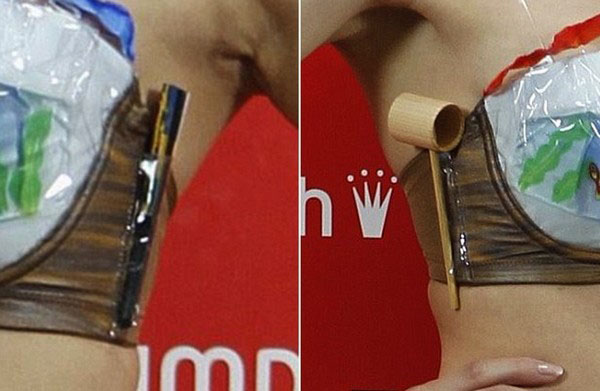 По замыслу создателей, хозяйка инновационного предмета одежды услаждает и взор, и слух. К новинке прицеплены Китайские колокольчики (Музыка ветра), звучание которых, по японским представлениям, успокаивает, а значит и снижает температуру тела. Авторы диковинки предлагают носить холодильный бюстгальтер с юбкой из бамбуковой циновки или москитной сетки.