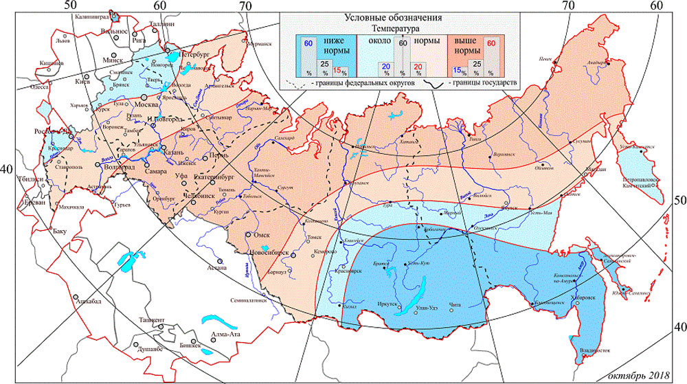 После того, как сдеражанный прогноз на лето 2018-го года, который Гидрометцентр дал россиянам перед началом теплого полугодия, не вполне сбылся, в главном погодном ведомстве страны, кажется, решили порадовать нас теплой зимой. Проанализировав климатические данные и прогностические разработки, они считают, что в октябре-марте с вероятностью 67-69% на большей части российской территории температурный фон ожидается около и выше средних многолетних значений.