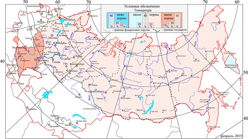 В февреле, судя по карте Гидрометцентра, температура везде будет выше нормы, не повезет лишь жителям Камчатки.
