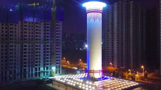 Наиболее впечатляюще выглядит установка в Сиане - это действующая 100-метровая очистительная воздушная башня, которая не только эффективно решает проблему защиты от смога, но и является выразительным архитектурным решением. Проект под названием Xian Smog Tower был инициирован в 2015 году Академией наук Китая. Строительство башни было завершено в прошлом году. Главной целью проекта назвали поиск эффективного и при этом недорогого метода по удалению загрязняющих веществ из атмосферы. Стоимость проекта не разглашается.
