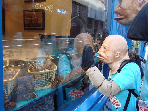 А чем это люди-рыбы заинтересовались в витрине? :)