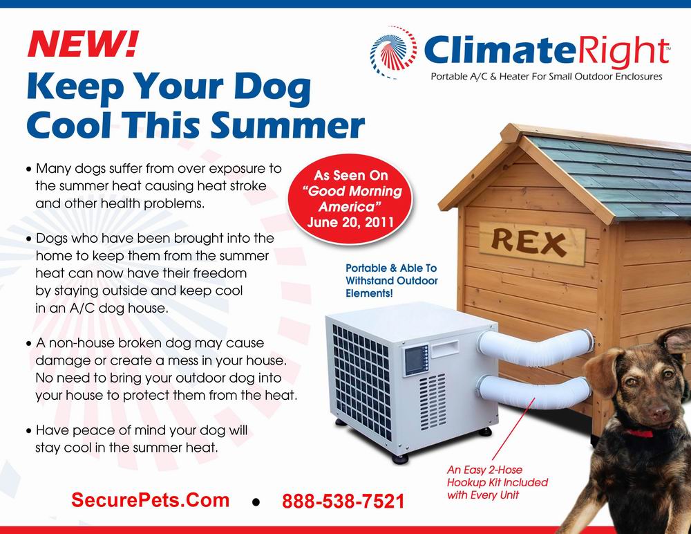 Компания ClimateRight разработала специальную модель кондиционера, которую можно подключить непосредственно к собачьей будке. Устройство охлаждает, обогревает или просто вентилирует домик, работая от обычной электрической розетки.