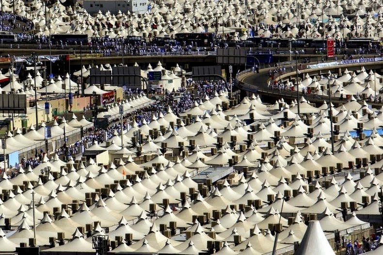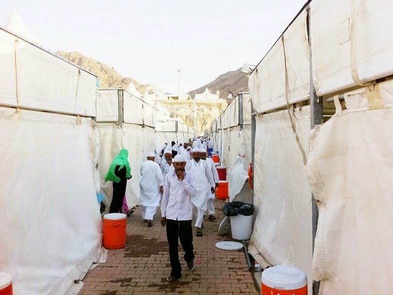 Палаточный городок с автономными кухнями и банями, а также кондиционерами специального назначения в каждой палатке находится в Саудовской Аравии, занимает площадь 20 км2, сообщает «Российская газета». Лагерь в данный момент пустует. Один раз в году в палатках размещают паломников, прибывающих на хадж. Однако саудиты поделиться палатками не спешат и ограничиваются словами поддержки беженцам, а также критикуют европейцев за неумение организовать прием переселенцев из Ближнего Востока.