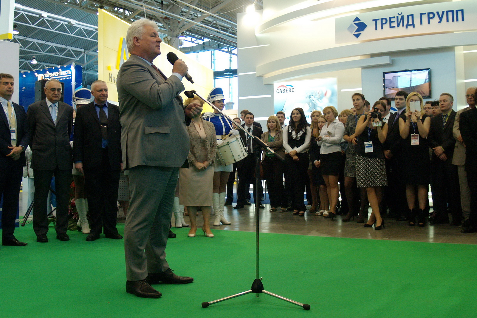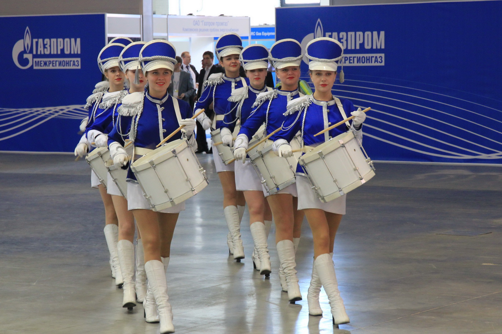 К месту проведения церемонии гостей и участников пригласили очаровательные барабанщицы, промаршировавшие сквозь 7 павильон выставочного комплекса Ленэкспо.
