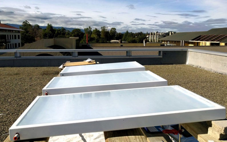 Конструктивно система состоит из многослойных пластин, внутри которых проходят медные трубки, по ним циркулирует нагретая в помещениях здания вода. Пластины экранируют внешнее тепло и «забирают» тепло протекающей воды, охлаждая ее. Это тепло уходит в верхние слои атмосферы и далее в космос. Уже создан действующий прототип, доказавший эффективность нового метода. На крыше одного из университетских зданий Стэнфорда исследователи разместили 4 квадратные панели, созданные по оригинальной технологии, с размерами стороны каждой панели немногим более 60 см (2 фута). За три дня работы устройства температура воды, циркулирующего в нем, была стабильно на 3-5 градусов ниже температуры окружающей среды.