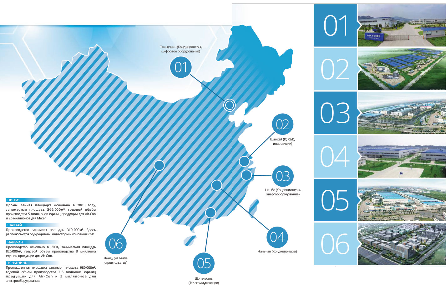 | Тяньцзинь | 980 тыс. м² | Объем производства, в год: 1,5 млн единиц систем кондиционирования и 5 млн единиц электрооборудования. |