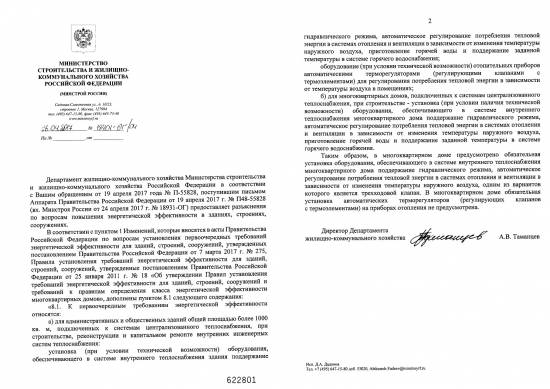 В соответствии с ответом Минстроя (подробный ответ во вложении), обязательна установка оборудования, обеспечивающего в системе внутреннего теплоснабжения многоквартирного дома поддержание гидравлического режима, автоматическое регулирование потребления тепловой энергии в системах отопления и вентиляции в зависимости от изменения температуры наружного воздуха. В многоквартирном доме обязательная установка автоматических терморегуляторов на приборах отопления не предусмотрена.
