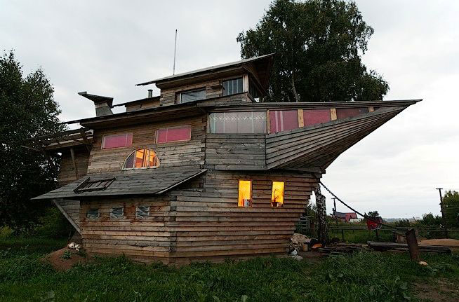 Еще один дом, напоминающий о русском фольклоре, появился в Кемеровской области. Это трехэтажное здание-корабль, построенное Николаем Ореховым из дерева без чертежей. В доме есть все для комфортного проживания — кухня, спальни, детская, бассейн и баня.