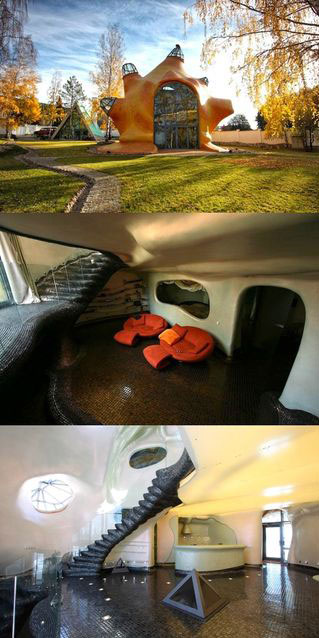 Похоже, что Юрий Гайдуков, строя свой дом в Свердловской области мечтал о море. Иначе как объяснить, что здание из монолитного торкрет-бетона получилось в виде ракушки? Отделка каждого из 3 этажей этого жилого дома посвящена одной из трех стихий — воде, воздухе и земле (морском дне). Здесь нет углов и прямых линий, только плавные изгибы и мягкий свет из небольших окошек. Дом оборудован системой водяного отопления с газовым котлом, а для прохлады летом по трубам в стенах бежит холодная вода.