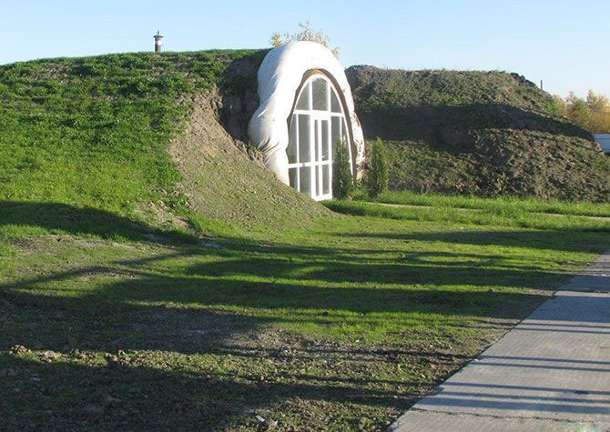 И, наконец, последний из необычных домов в обзоре — сооружение из нефтяных отходов, построенное в Тюмени. Для его возведения использовался дентомикс — материал, который образуется в ходе переработки буровых шлаков. Внешне дом похож на землянку, но внутри вполне уютен. К нему проводятся обычные коммуникации, а отапливается он печью. Автор проекта, Виктор Рядинский, руководитель тюменского НИИ экологии и рационального использования природных ресурсов, считает, что подобные дома будут очень востребованы в вахтовых поселках Сибири.