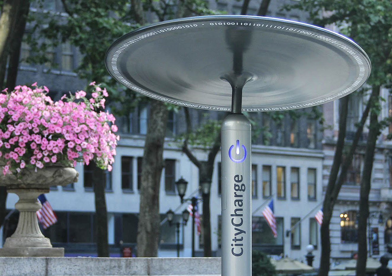 Этим летом на улицах Нью-Йорка впервые появились станции для зарядки мобильных устройств, работающие на солнечной энергии. CityCharge своим дизайном очень напоминают НЛО: верхняя часть конструкции снабжена солнечными коллекторами и принимает лучи, а в нижнюю встроены аккумуляторы, где накапливается энергия.
