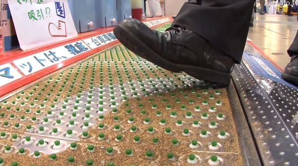 В Японии без электроники никуда, так что новый коврик — не резиновый, не шерстяной, а электронный. На его поверхность выведены патрубки, которые всасывают в себя всю грязь сначала с обуви, а потом и с самого половика. Специальный сенсор включает устройство, когда обнаруживает человека поблизости. Встроенный пылесос начинает работать, когда кто-то встает на активную поверхность коврика, сообщает diginfo.tv.