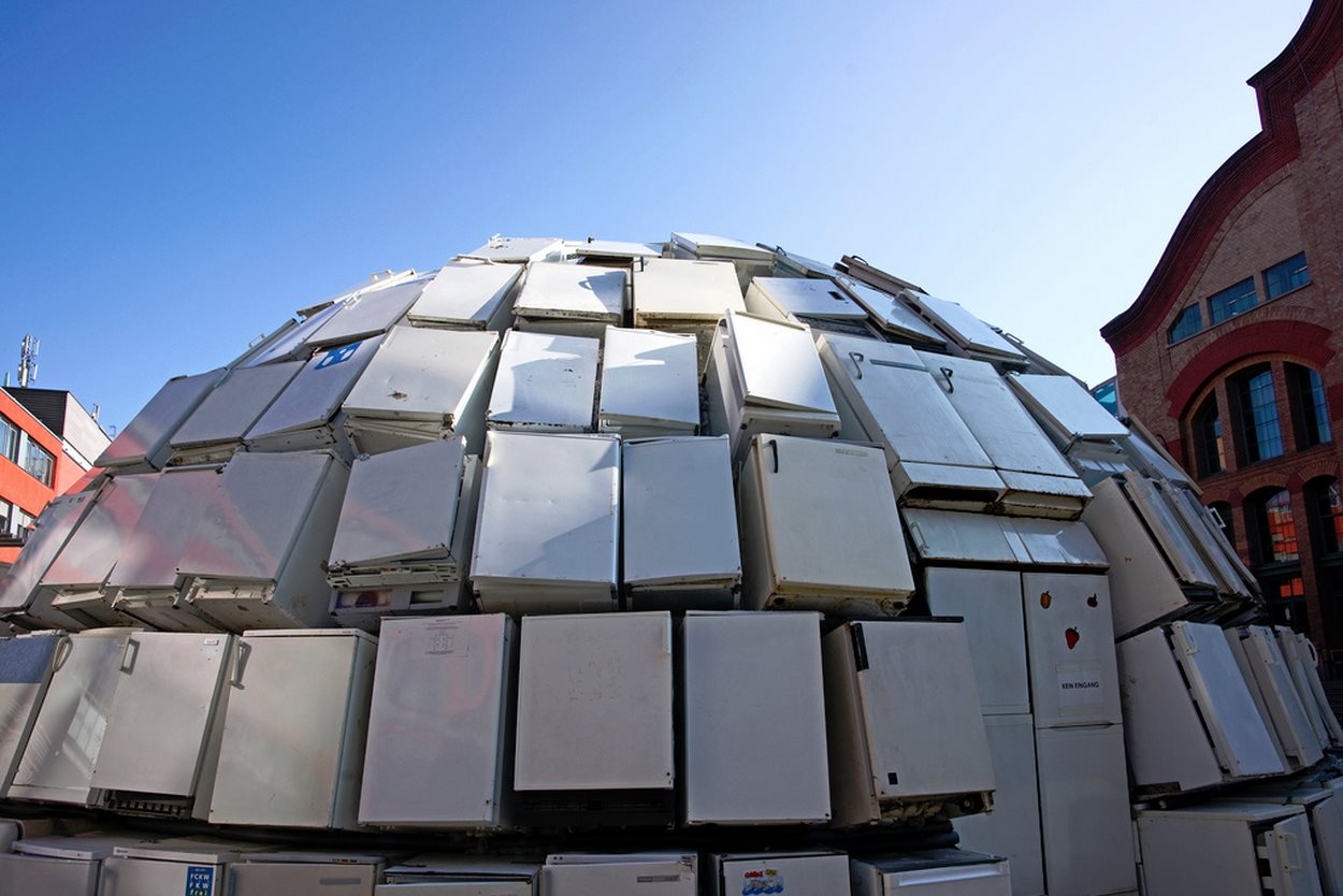 | Иглу, сооруженное из 322 старых холодильников. Высота 5,5 м, ширина 9,8 м, вес 10 т. Внутри скульптуры размещена экспозиция, посвященная сбережению энергии. Фото hogsvilleBrit // flickr.com |