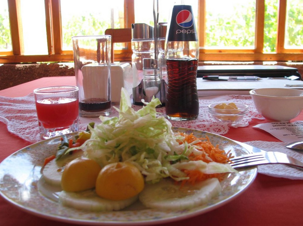 Посетитель ресторана выбирает из блюд, приготовленных на одной из 10 солнечных печей. Кондиционированный зал ресторана не бывает наполнен битком, потому что «пропускная способность» заведения ограничена 7 десятками голодных людей в сутки. Больше — непосильная нагрузка на плечи солнечной печи. Приходят сюда самые верные и терпеливые — на то, чтобы испечь хлеб, требуется два часа, а на прожарку мяса — три часа!