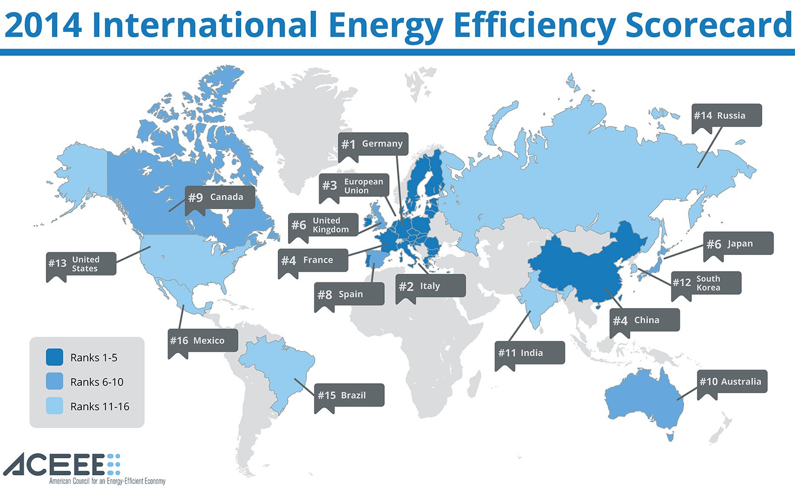 Рейтинг составлен по тому же принципу, что используется Советом для определения рейтинга энергоэффективности штатов США. Он включает в себя 16 крупнейших экономик мира, которые отвечают за более чем 81% мирового ВВП и 71% мирового потребления энергии.