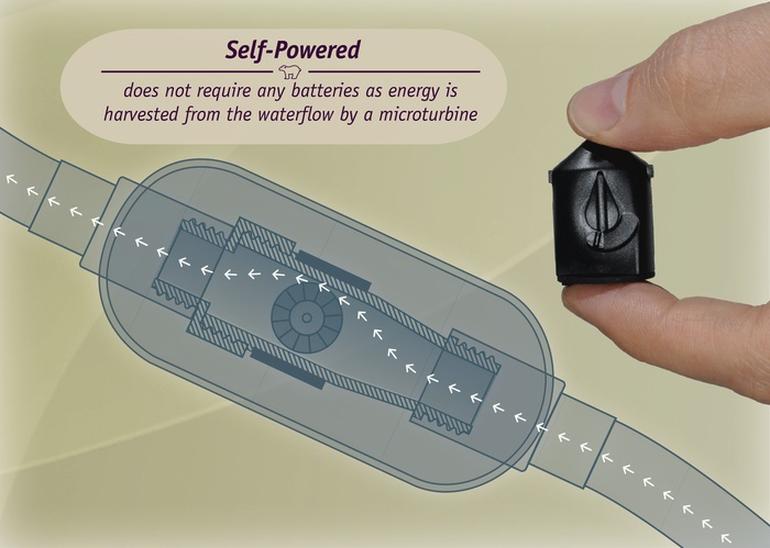 Устройство швейцарских умельцев работает просто: индикатор вкручивается в воронку или смеситель. Энергия для работы индикатора поступает от размещенной в нем микротурбины, которая вращается под действием потоков воды.