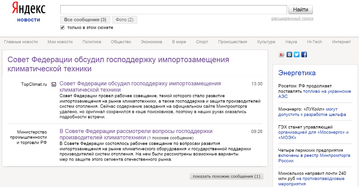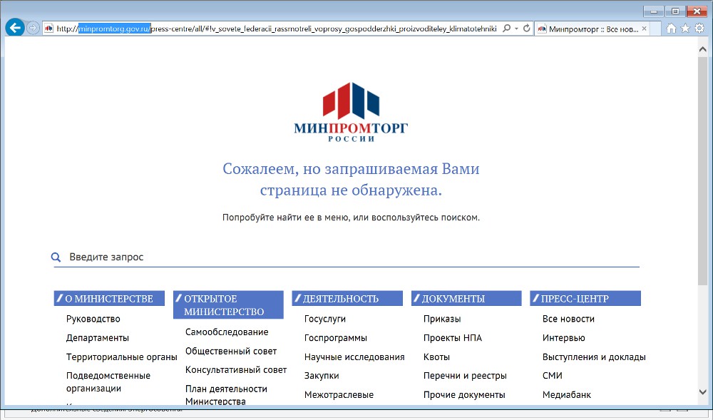 Совет Федерации провел рабочее совещание, темой которого стало развитие импортозамещения на рынке климатической техники, а также господдержка и защита производителей систем отопления. Сейчас содержание заседания на официальном сайте Минпромторга удалено, и оригинал не сохранился даже в кэше поисковиков, поэтому в наших руках оказался только общий ход встречи.