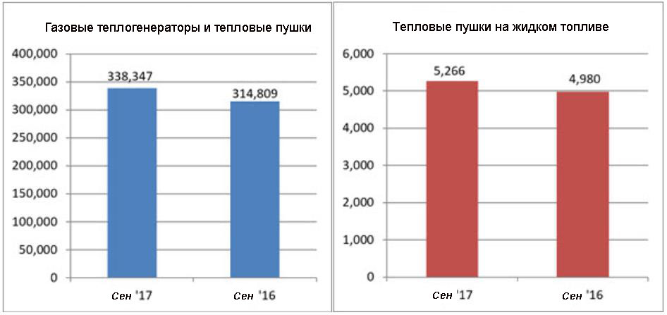 Следует отметить рост поставок и в категории «теплогенераторы и тепловые пушки»: прирост по газовым теплогенераторам составил 7,5%, по жидкотопливным - на 5,7%. Но в абсолютных величинах объемы поставок газовых теплогенераторов намного превосходят жидкотопливные.