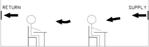 Такая вентиляция использует горизонтальный ток воздуха и приобретает все большую популярность в школах и служебных помещениях в Восточной Азии, так как помогает сократить расходы на электроэнергию.