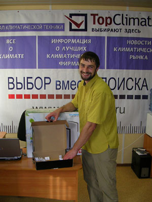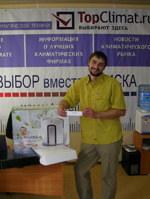 Также среди участников акции, заключивших договор с одной из наших компаний, был разыгран супер-приз - воздухоочиститель Hyundai. Приз достанется Сергею Титову, заключившему в марте месяце договор с компанией «United Elements». В организации розыгрыша принимал участие генеральный директор компании «Экопартнёр», предоставившей нам супер-приз, Ю. Г. Псхациев