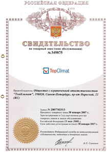 TopClimat - зарегистрированный товарный знакТоварный знак TopClimat зарегистрирован Федеральной службой по интеллектуальной собственности, патентам и товарным знакам.