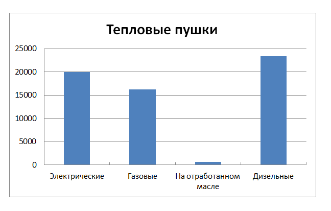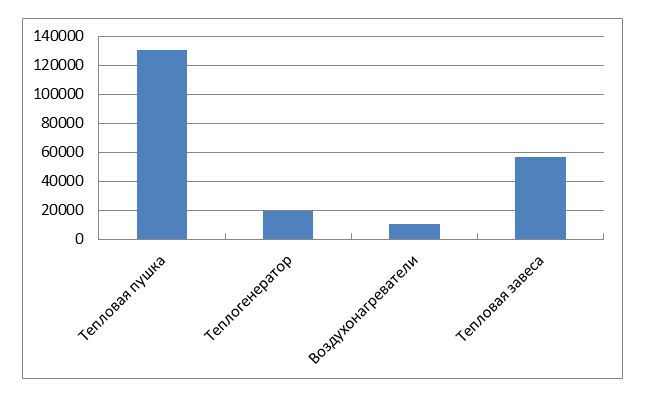 Оказалось, что тепловые пушки люди ищут чаще всего — более 130 тыс. запросов по этому словосочетанию. Далее следуют тепловые завесы с 57 тыс., теплогенераторы — 19 тыс. и воздухонагреватели — около 10 тыс. запросов за месяц.