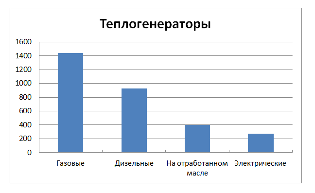 А вот среди различных вариантов исполнения теплогенераторов пользователи Яндекса чаще всего ищут модели на газу — 1,5 тыс. запросов. Далее следуют дизельные (около 1 тыс. запросов), генераторы на отработанном масле (400 запросов) и электрические (300 запросов).