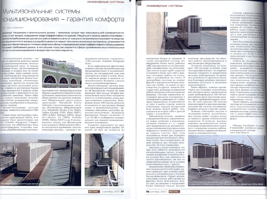 Мультизональные системы кондиционирования: все моделиЖурнальный вариант: