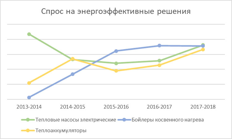 Необходимо отметить, что в эту зиму выросла популярность энергоэффективных решений, к числу которых из Топ-30 нашего каталога мы отнесли уже упомянутые Теплоаккумуляторы, Бойлеры косвенного нагрева и Электрические тепловые насосы.