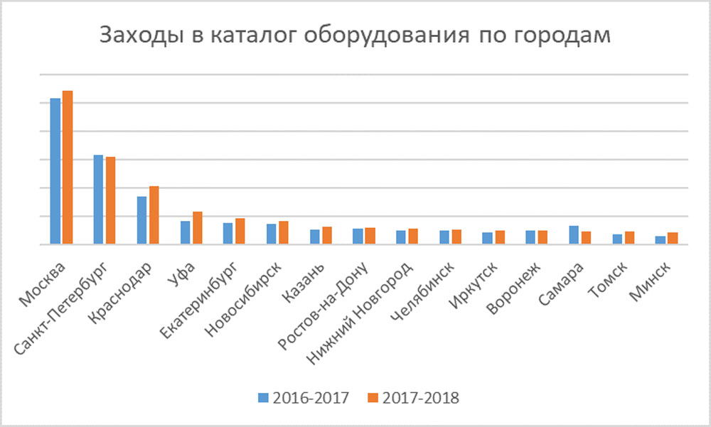 Данная гипотеза нашла подтверждение в ходе анализа заявок на оборудование, которые оставляют нам посетители портала. Объем полученной выборки составил несколько сотен тысяч посетителей, ее распределение близко к нормальному закону, что еще раз подтверждает гипотезу о репрезентативности выборки. Таким образом, по количеству посетителей тех или иных категорий оборудования можно судить о спросе на эти категории. Отметим, что общее число посетителей каталога оборудования выросло этой зимой относительно прошлого года, ставшего наихудшим по этому показателю.