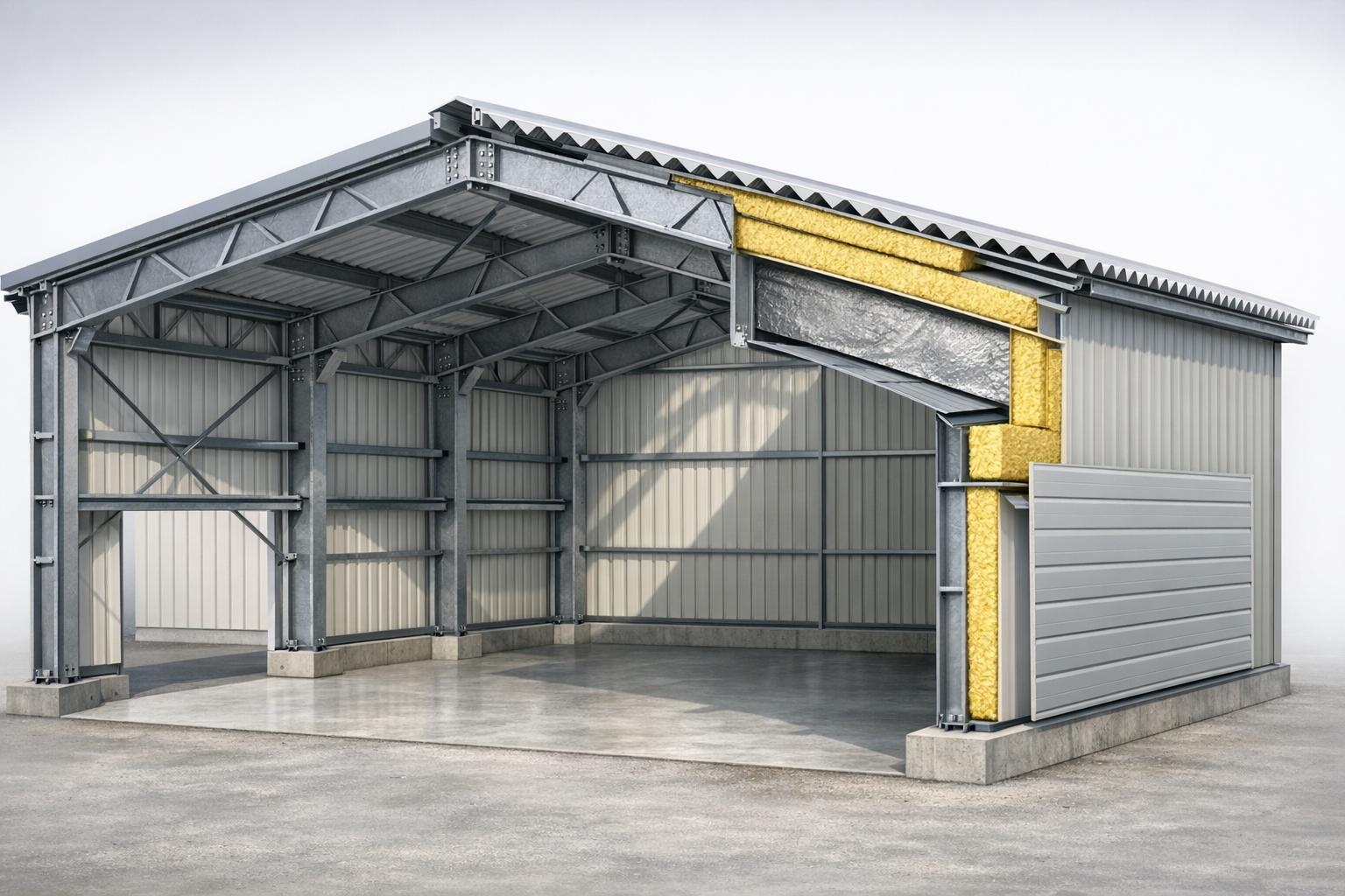 Каркас ангаров, как правило, изготавливается из стальных профилей. В качестве ограждающих конструкций применяются профилированные листы, сэндвич-панели или тентовые покрытия. Выбор материалов зависит от климатических условий и требований к теплоизоляции. Каждое решение имеет свои эксплуатационные особенности.