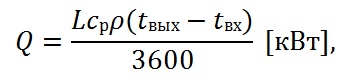 В этом случае указывают требуемый расход охлаждающей жидкости (чаще всего воды) и ее температуры на входе и выходе из агрегата. Тогда тепловую мощность можно рассчитать по формуле: