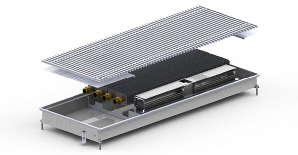 Но теперь ситуация в корне изменилась — появились новые модели конвекторов с принудительной конвекцией. При этом, если раньше выпускались исключительно встраиваемые в пол модели, то теперь можно приобрести как напольные, так и настенные модули.