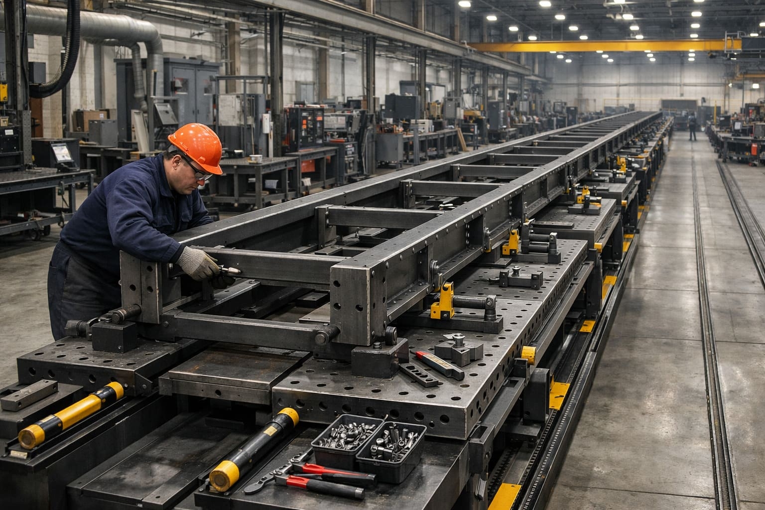 Поэтому вопрос о рельсовой системе имеет смысл ставить не как вопрос о современном оснащении вообще, а как вопрос о том, в какой момент рабочее место перестает соответствовать характеру изделий. Для длинномерных рам, протяженных каркасов, балочных узлов, секций и других подобных конструкций важна не просто длина поверхности. Важна возможность вести изделие по всей рабочей зоне как единую сборку, а не как набор фрагментов, каждый из которых приходится отдельно спасать от ограничений поста.