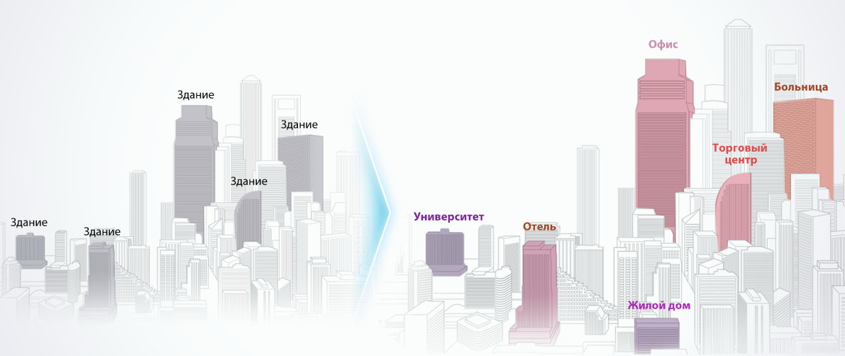 В 2013 году компания LG Electronics предлагает российским клиентам уникальные «Вертикальные решения» . Концепция очень проста — это комплекс инженерных решений, направленных на оптимизацию операционных затрат, и увеличения энергоэффективности конкретного типа здания. Так, например, контроль освещенности рабочих мест будет крайне полезен в офисном здании, но окажется совершенно ненужным в больнице.